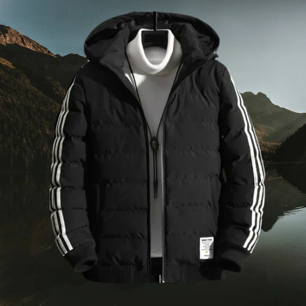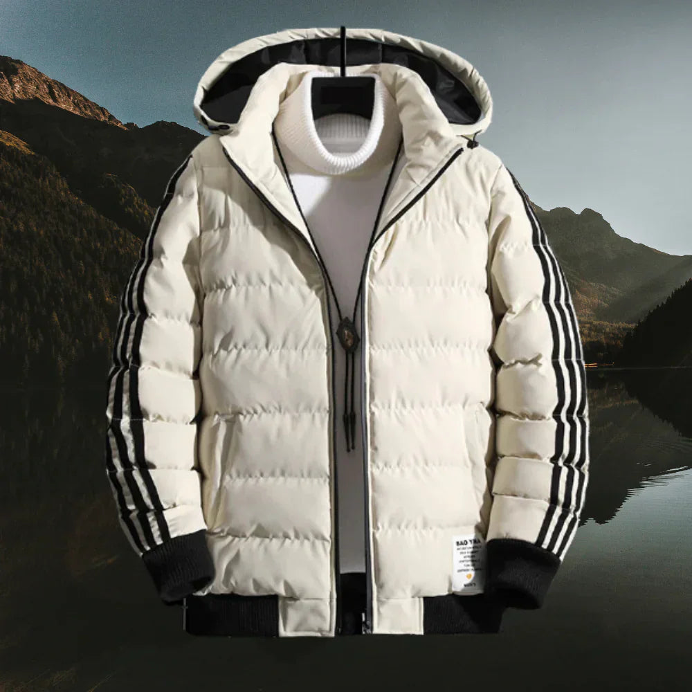 Alan - Luxe Gewatteerde Winterjas met Gestreepte Mouwen en Capuchon