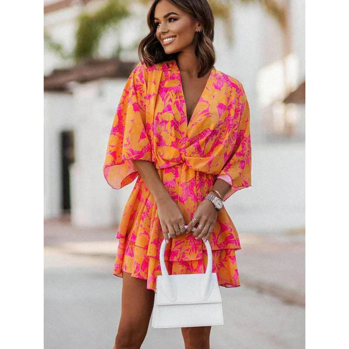 De Alina gekleurde mini zomerjurk voor dames is de perfecte keuze voor een levendige en stijlvolle zomerse look.